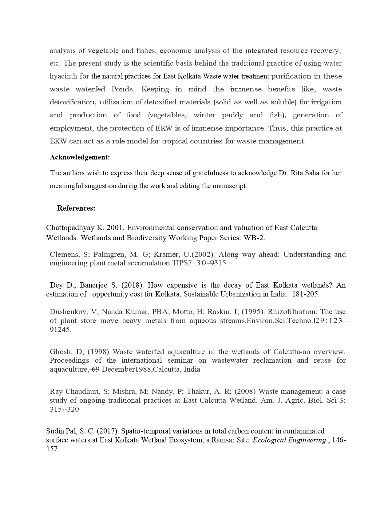 The results revealed that the clams were better suited for water bodies with higher alkalinity located in Southern India. However, other species could be introduced in the lakes of West Bengal such as water hyacinths, which have the capability of absorbing 90-95% of the metallic pollutants. This research presents innovative methods to ameliorate the water quality in affected areas.